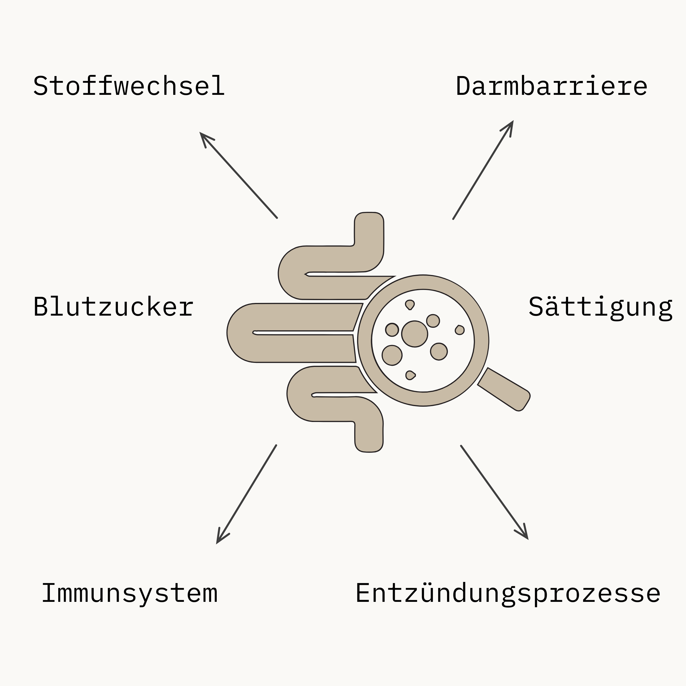 Zahlreiche Studien untersuchen, wie die Fermentation bestimmter Ballaststoffe im Darm mit verschiedenen physiologischen Prozessen im Körper zusammenhängt.